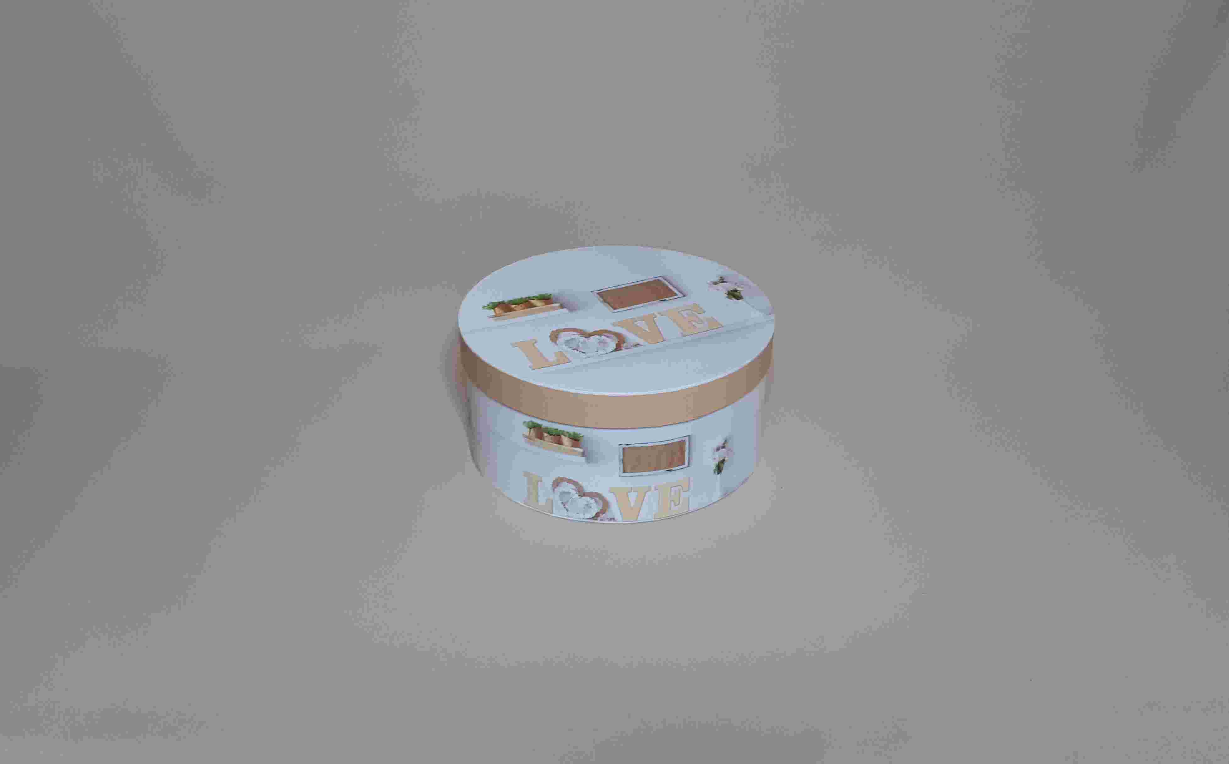 Коробка круг "Love" на белом 22,5х10,5 см.