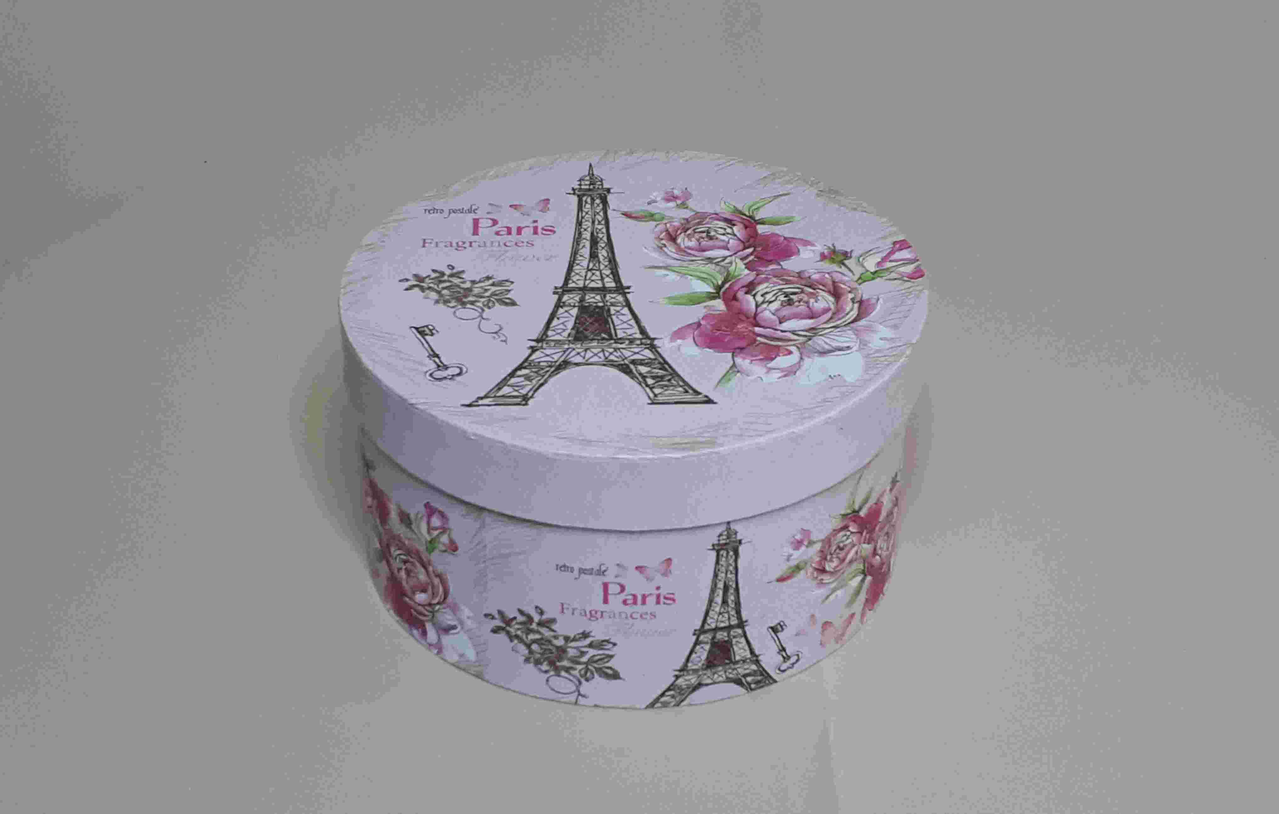 Коробка круг розовая "Paris" 17х9 см.