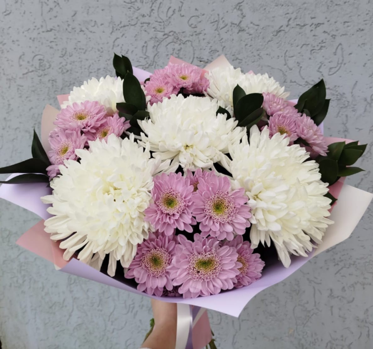Каждый цветок уникален. Мы не можем гарантировать 100% совпадения Вашего букета и букета на фото. Это зависит от сезонности, наличия и природной индивидуальности каждого цветка. Но мы обязательно сохраним общую композицию и настроение букета!