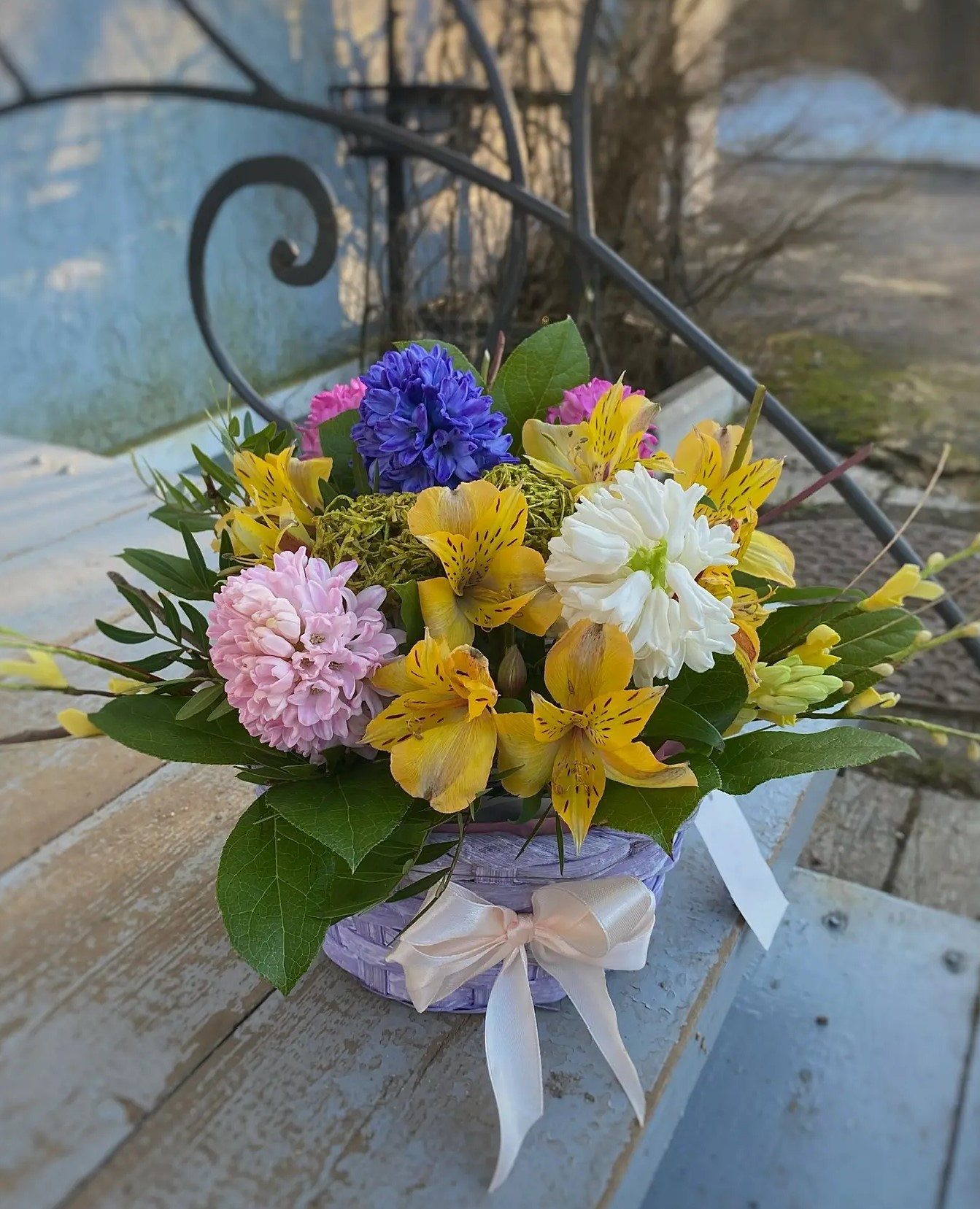 Каждый цветок уникален. Мы не можем гарантировать 100% совпадения Вашего букета и букета на фото. Это зависит от сезонности, наличия и природной индивидуальности каждого цветка. Но мы обязательно сохраним общую композицию и настроение букета!