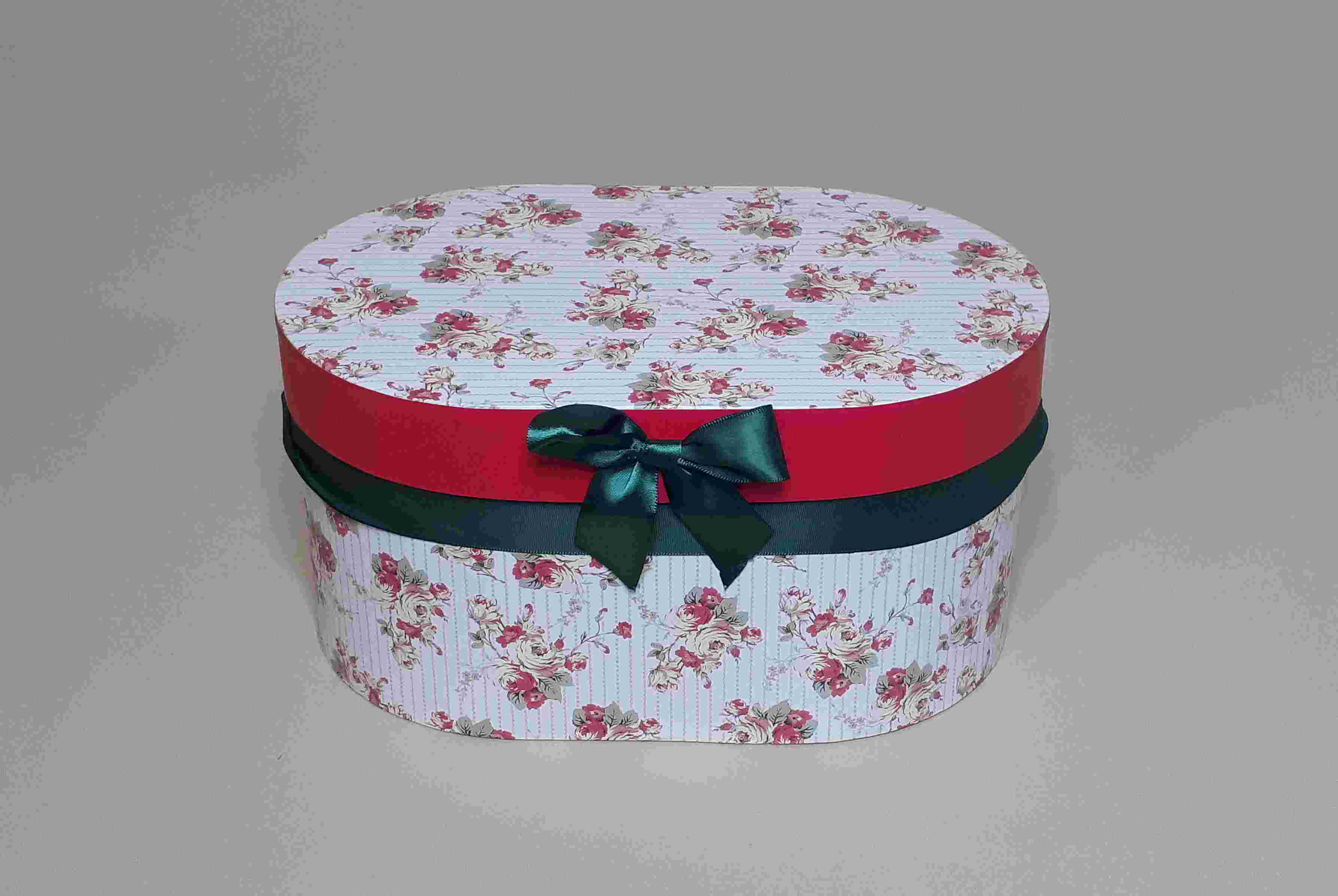 Коробка овал, цветы на белом, 28/18х14 см.